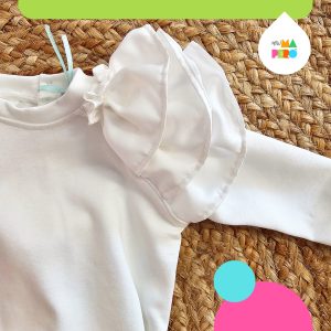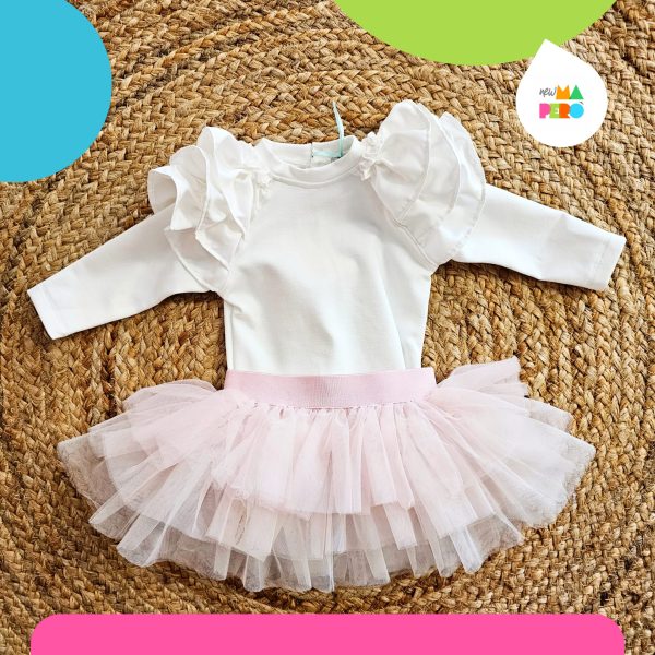 Completo artigianale composto da gonna in tulle e maglia in cotone con rouge nelle spalline
